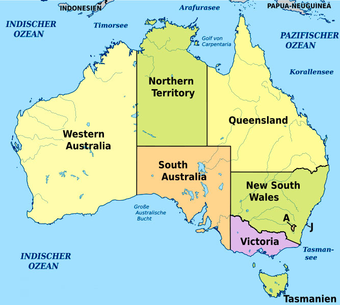 Australien setzt sich aus sechs Bundesstaaten, drei Territorien und sieben Außengebieten zusammen: