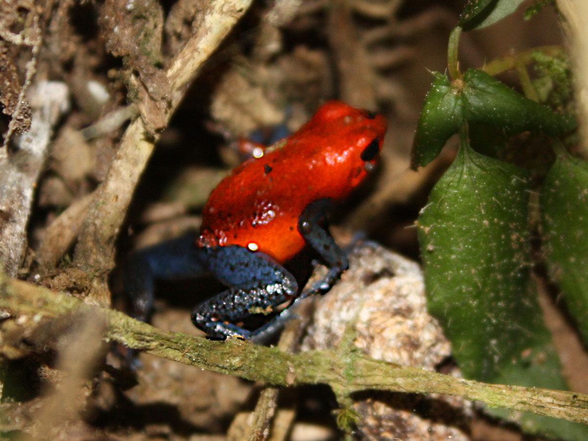Nach dem Frühstück entdeckte ich auf einem kleinen Felsen einen Pfeilgiftfrosch.