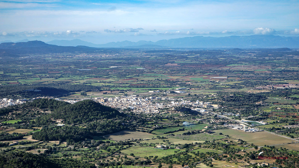 im Südosten glänzt das Mittelmeer mit der Insel Cabrera am Horizont und Richtung Norden erspäht man sogar